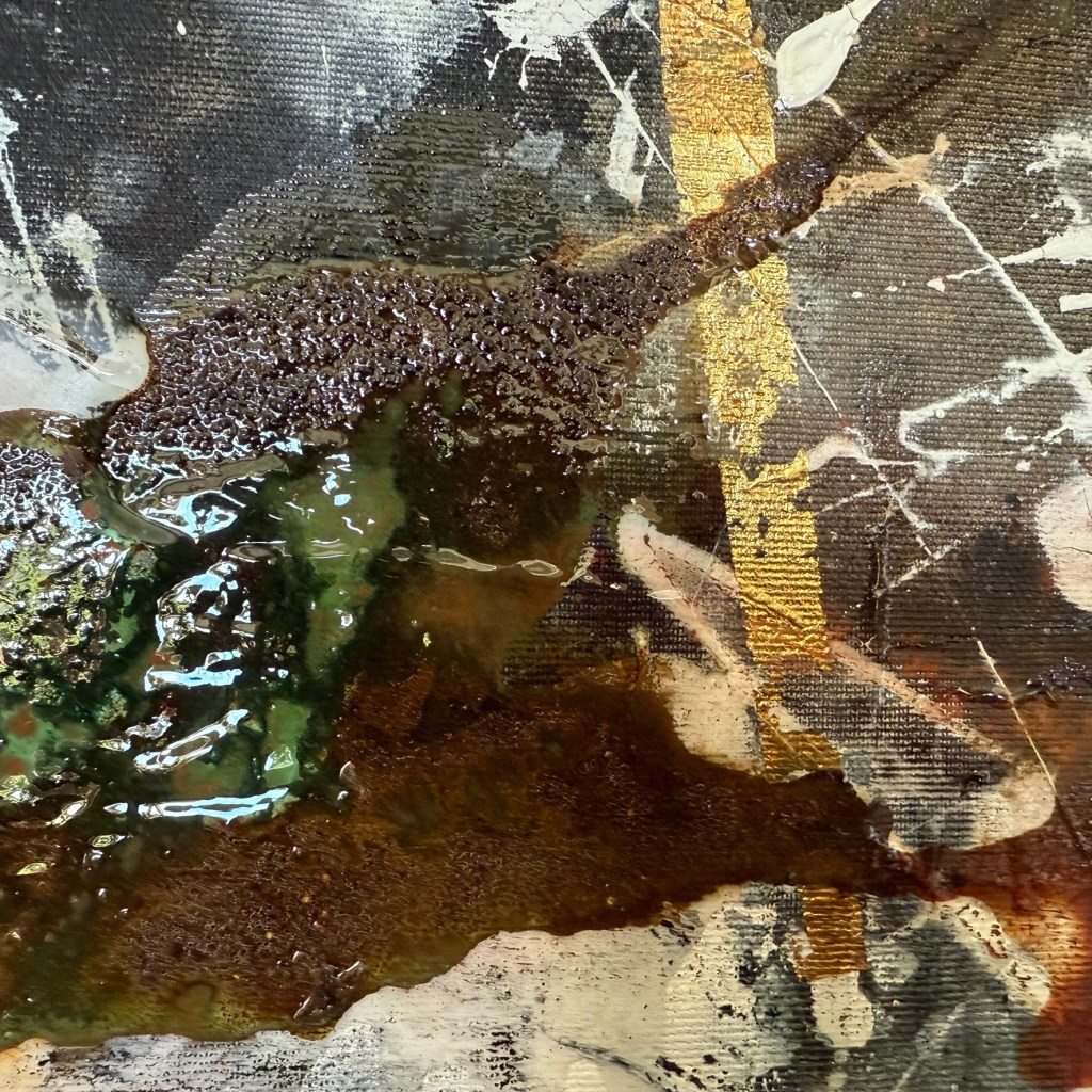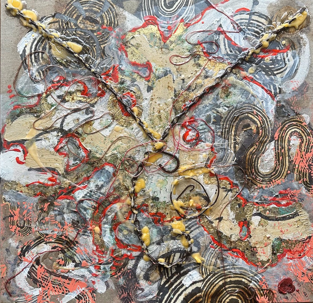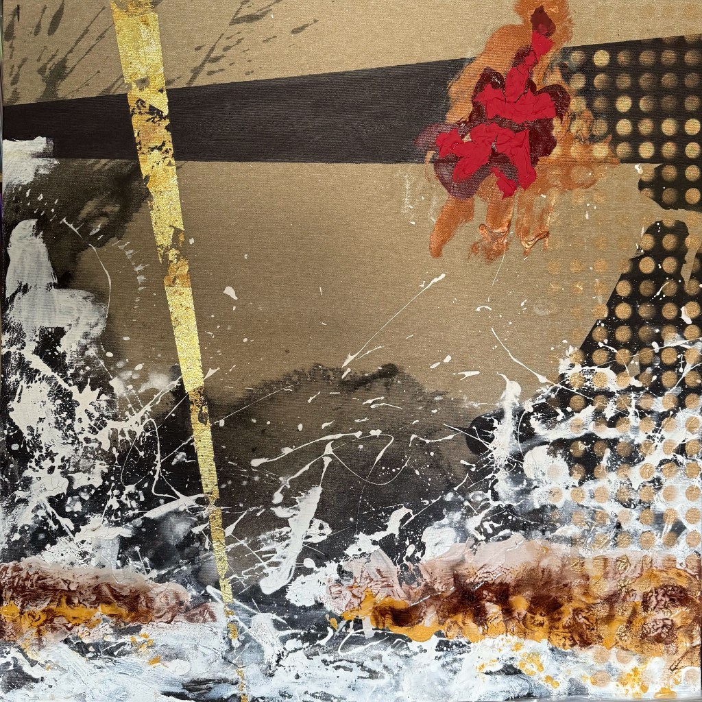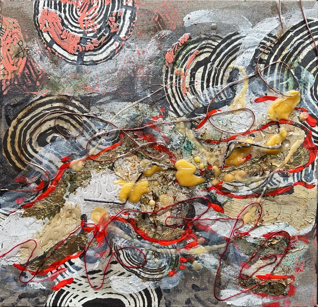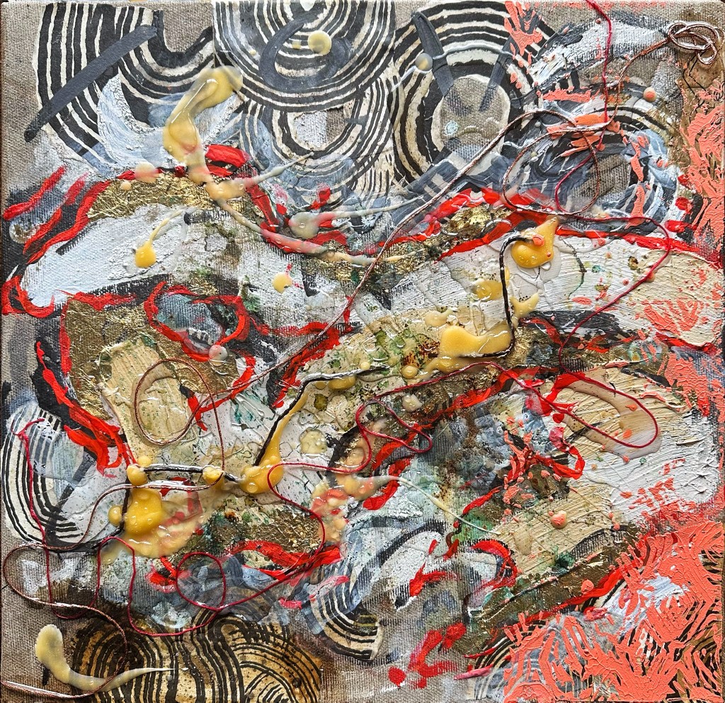 Mixed media on canvas. 30 x 30″ Images below from WIP.