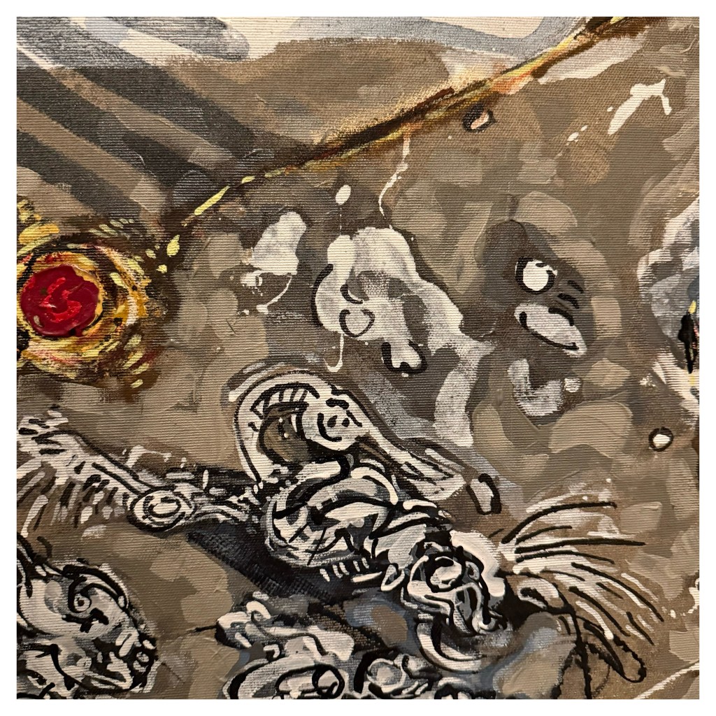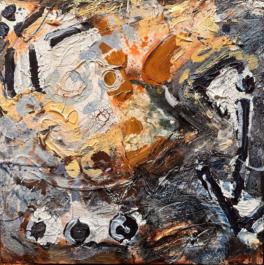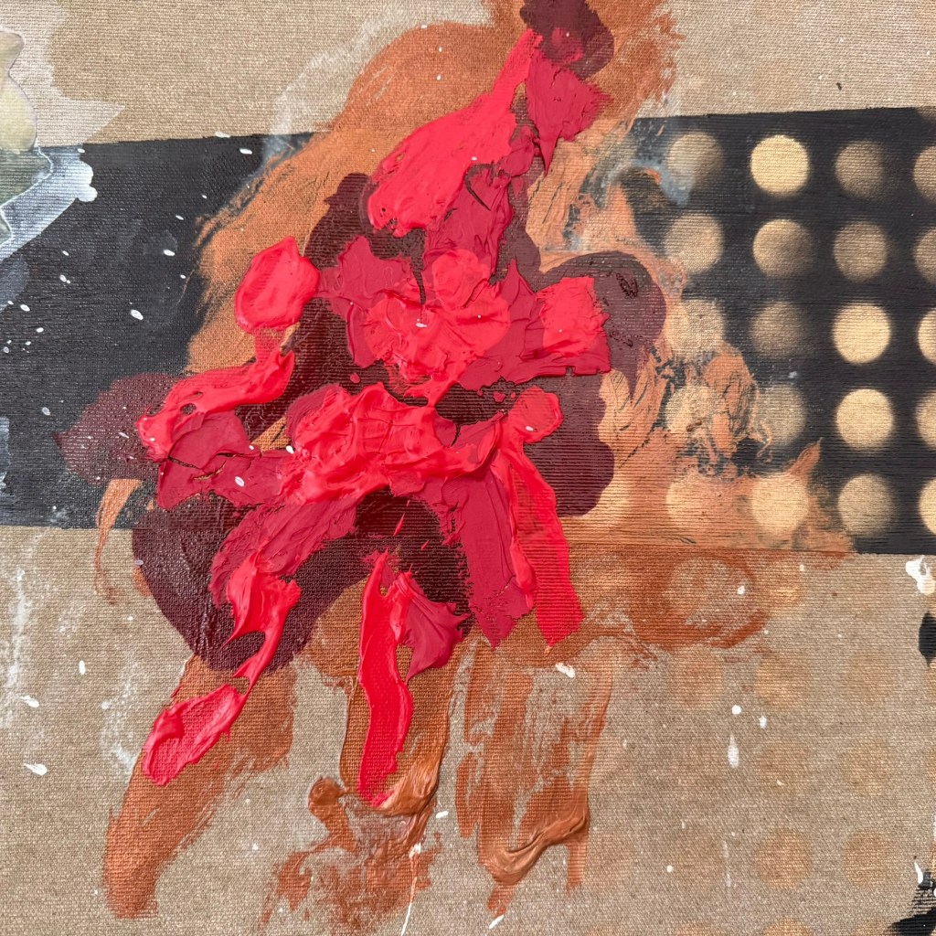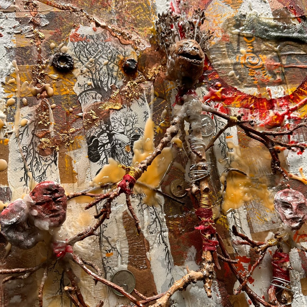 Mixed media on canvas. 30 x 30″ Images below from WIP.