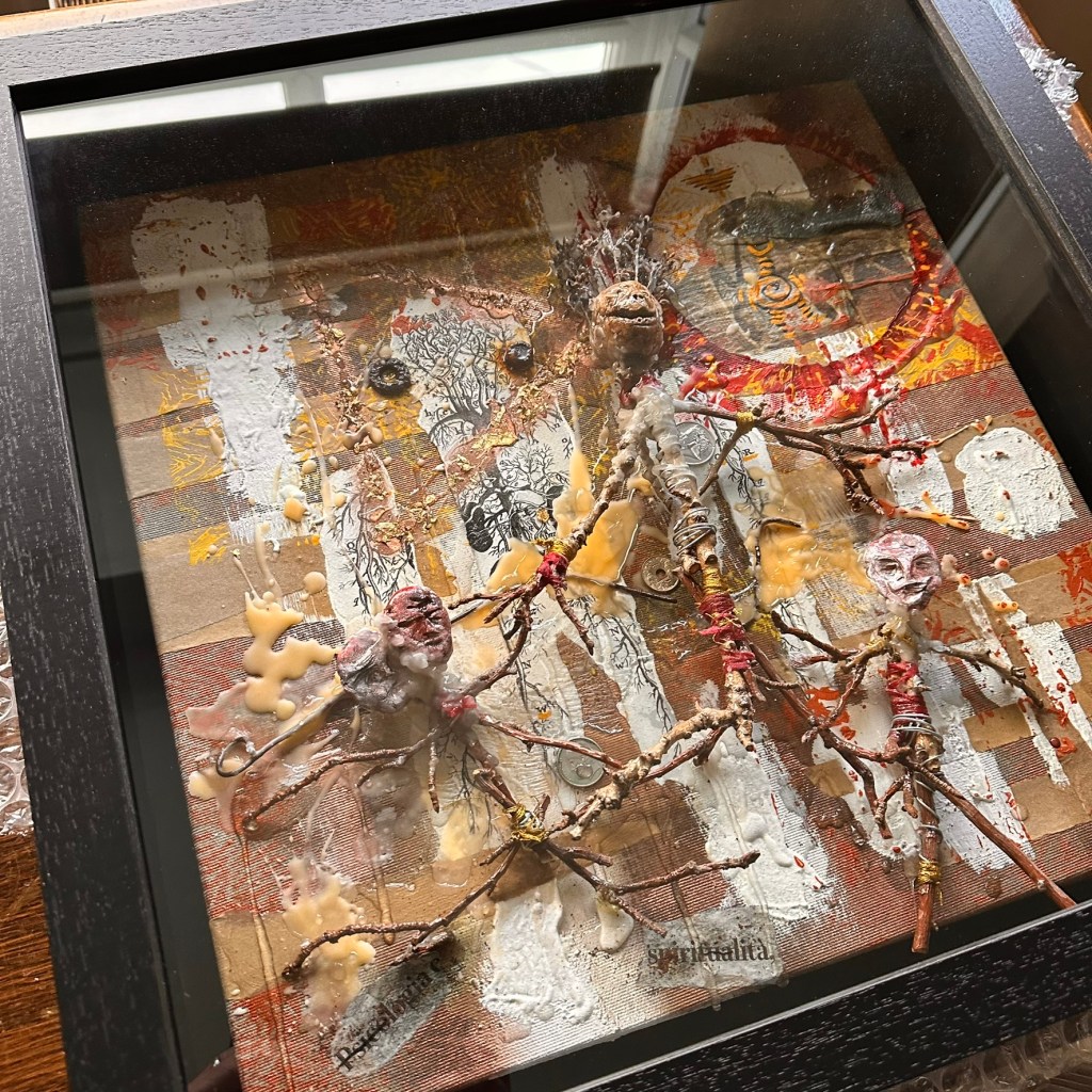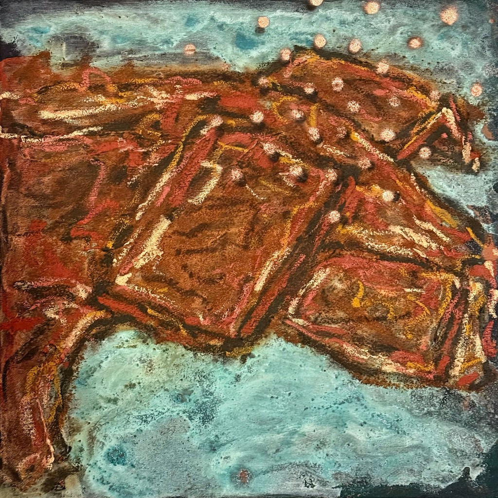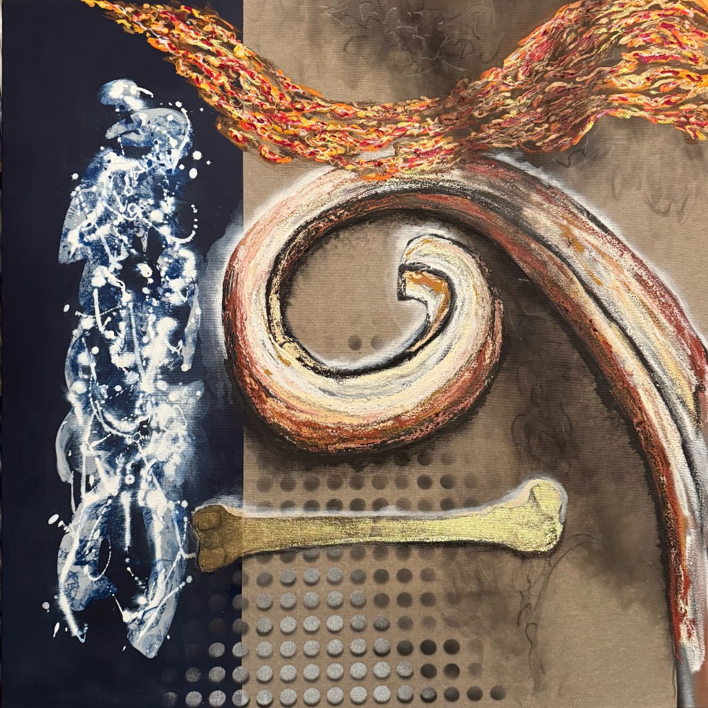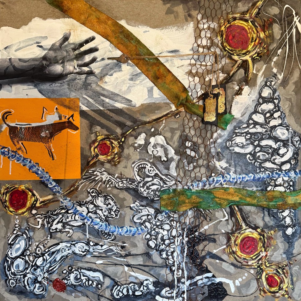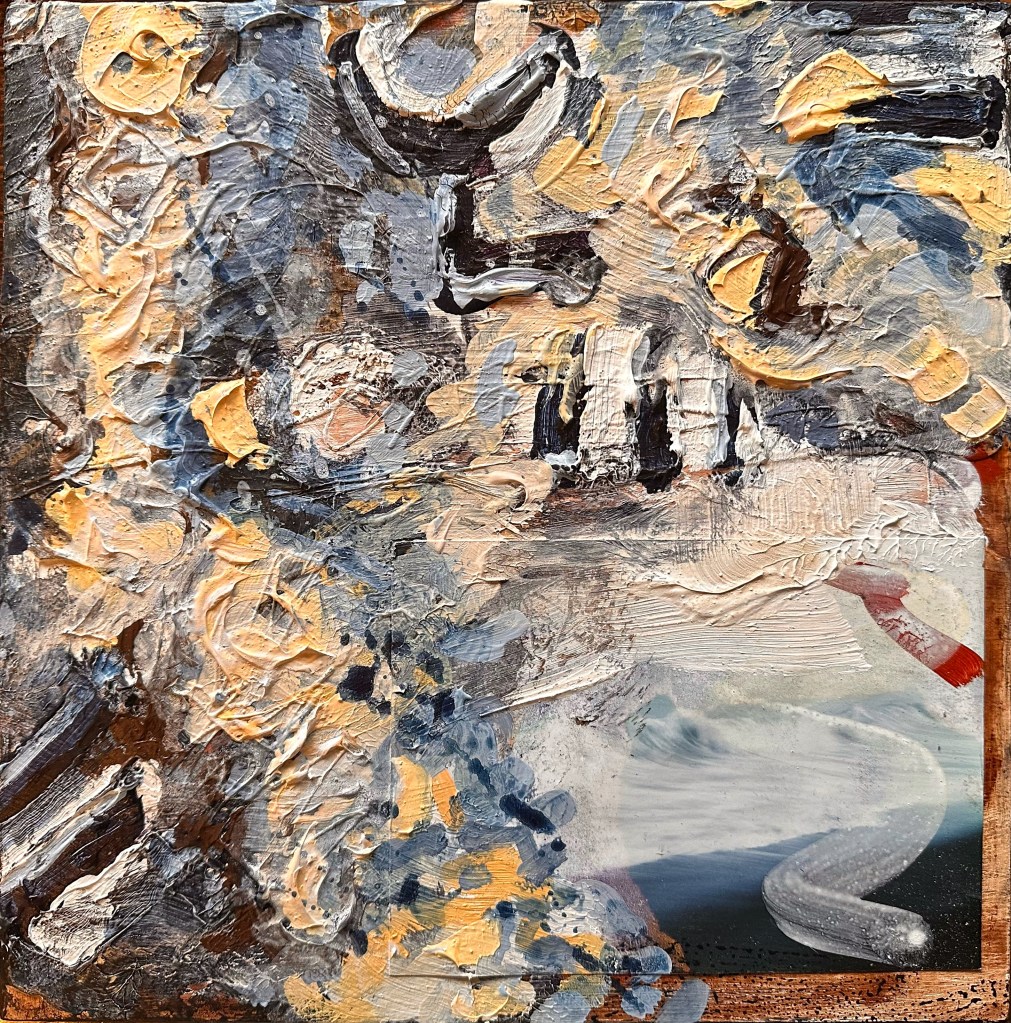 Mixed media on canvas. 30 x 30″ Images below from WIP.