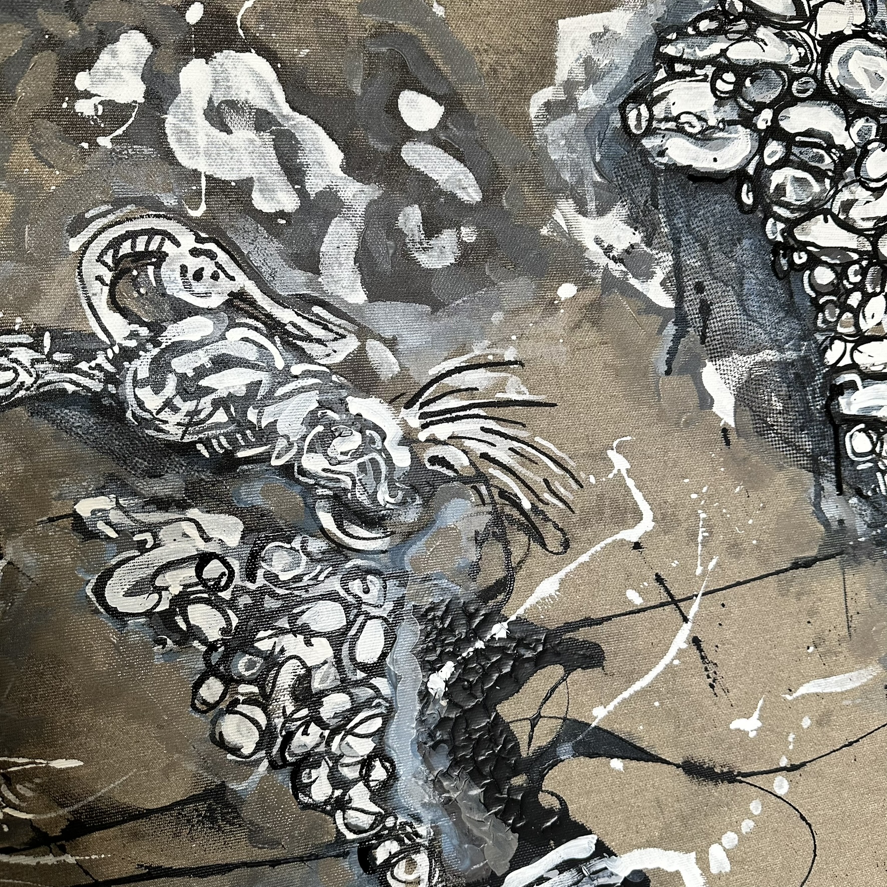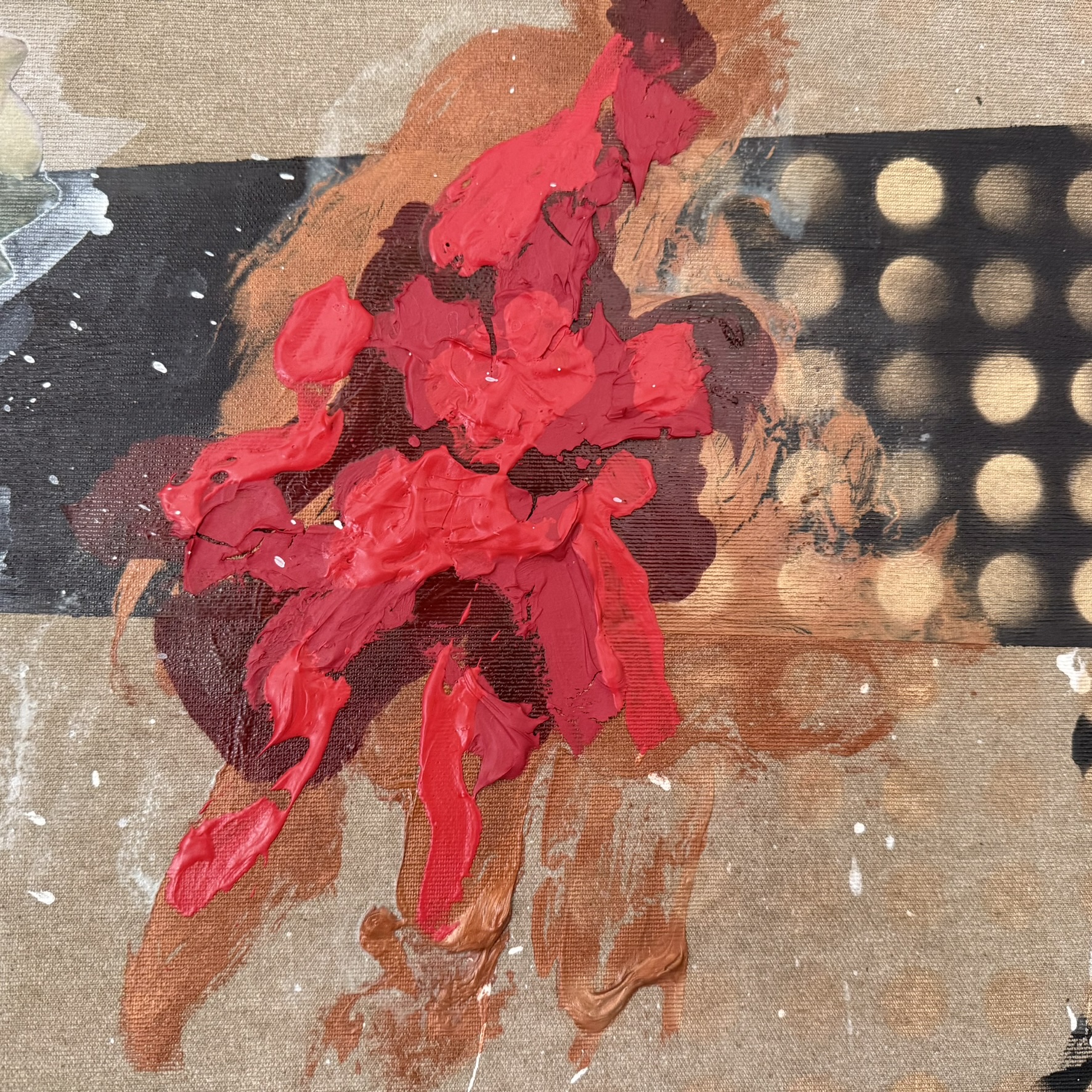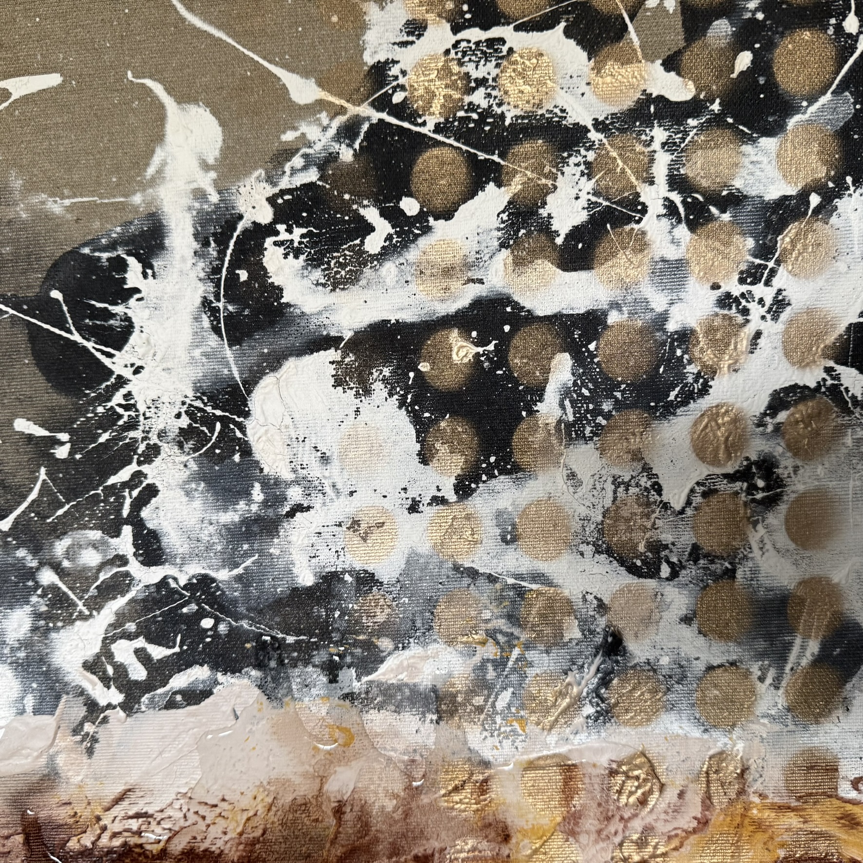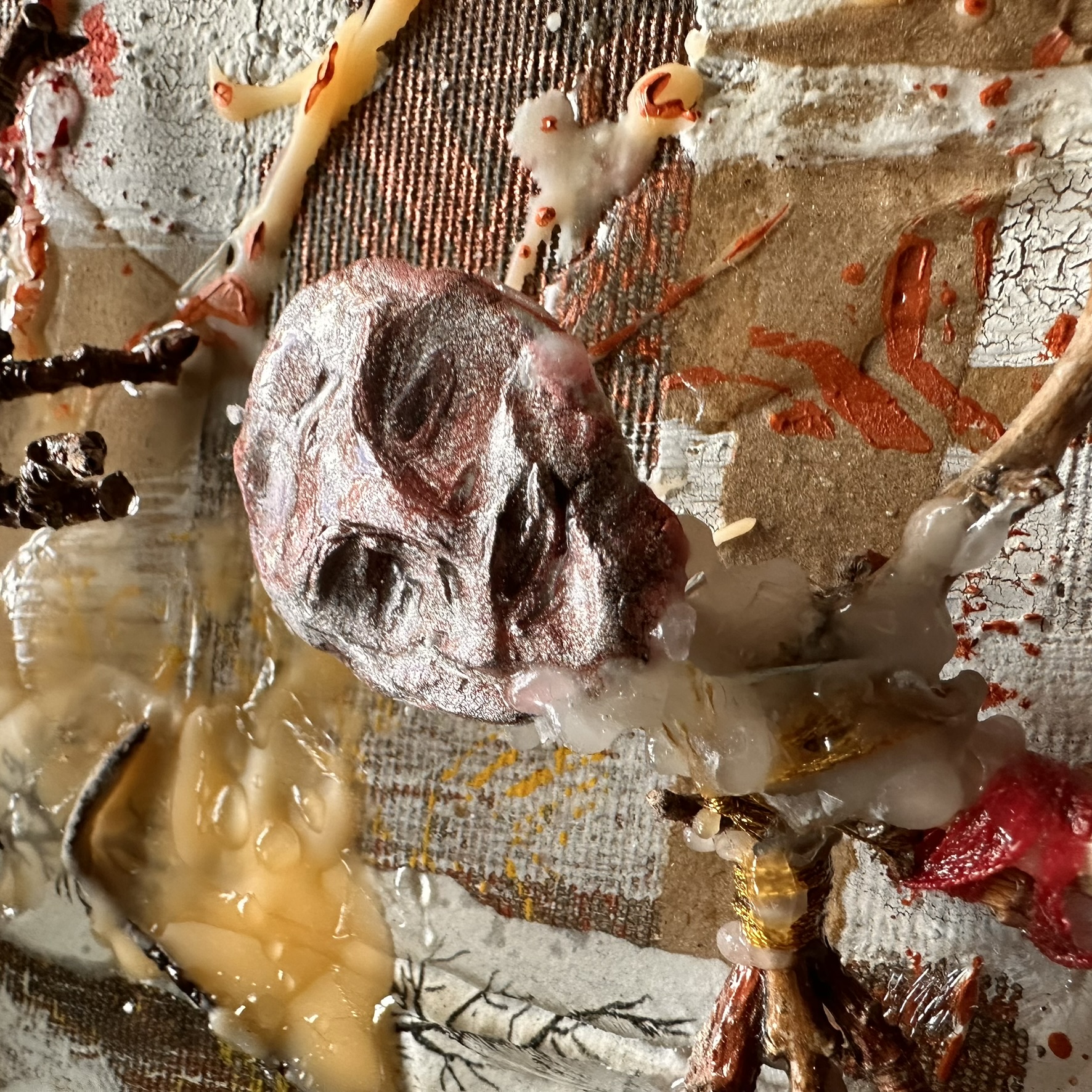Mixed media on canvas. 30 x 30″ Images below from WIP.