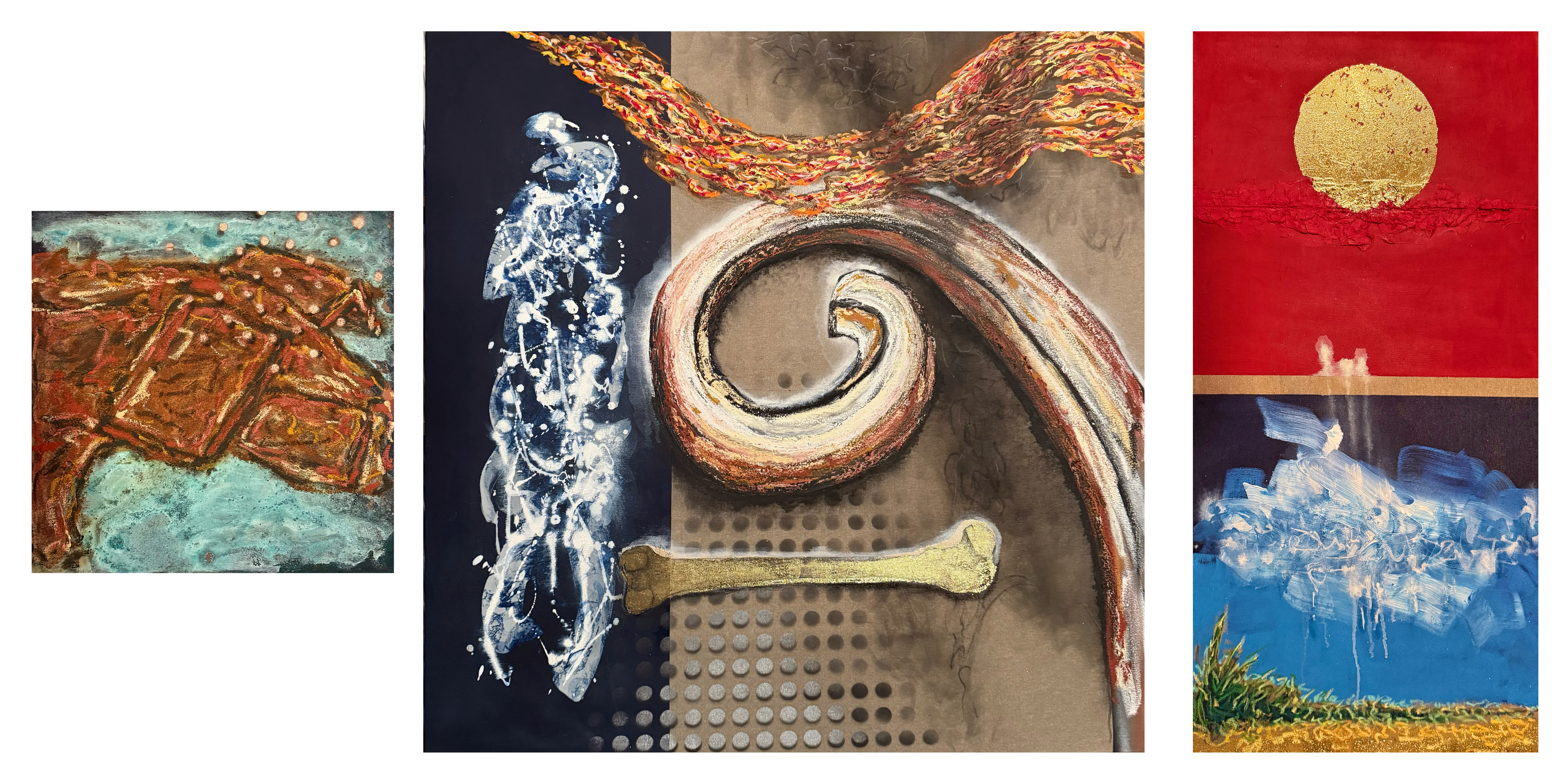 Mixed media on canvas – 18 x 18″, 36 x 36″, 18 x 36″
